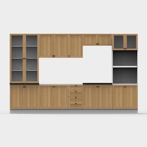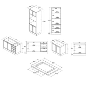 - Compartimentos variados, incluindo gabinetes superiores e inferiores, otimizando o aproveitamento do espaço em cozinhas de diferentes tamanhos