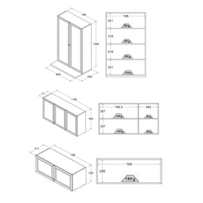 - Fixação é feita por girofix, cavilhas e parafusos, necessário fixar todos os módulos na parede, inclusive balcões.