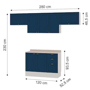 - A entrega será realizada até a porta de entrada ou portaria do endereço informado. Caso autorizado pela portaria, o produto será deixado no andar térreo. O transporte até o interior do imóvel é responsabilidade do cliente. Cor: Azul / Branco | Estado de Origem: RS | Peso Produto Com Embalagem (Kg): 117 | Garantia em Meses: 3 | Nome do Simples no Fornecedor: Genial | Comprimento Produto Com Embalagem (cm): 140 | Altura do Produto com Embalagem (cm): 12 | Largura Produto Com Embalagem (cm): 50 | Material para Filtro: MDF | Largura do Produto (cm): 280 | Peso do Produto (Kg): 107 | Comprimento do Produto (cm): 52 | Descrição do Tamanho: Grande | Altura do Produto (cm): 230 | Principais Características do Produto (bullet_point#0): 100% MDF | Principais Características do Produto (bullet_point#1): Pés Ajustáveis | Principais Características do Produto (bullet_point#2): Dobradiças Metálicas | Corrediças: Telescópicas com amortecimento | Tipos de móveis de cozinha: Cozinha | Material do corpo: MDF | Is Fragile: true | Número do modelo: CM0046.04 | Baterias são necessárias?: false | Número da peça: 12 | Número de caixas: 12 | Componentes incluídos: Racks | Fabricante: Genialflex | Quantidade de itens: 12 | Certificação de teste externa: NÃO | Exige montagem: true | Peso do pacote: unit=kilograms;value=117 | Dimensões do item P x L x A: width#value=280;depth#unit=centimeters;height#value=230;height#unit=centimeters;depth#value=52;width#unit=centimeters | Requer Montagem: sim | Peso do item: value=12;unit=kilograms | Inclui manual de montagem: Sim | batteries_required: Não | color: Branco/Azul | external_testing_certification: Não aplicável | included_components: Kit montagem | is_assembly_required: Sim | item_depth_width_height: 52,5 x 280 x 230 | item_weight: 113,35 | Manufacturer: Genialflex | model_number: CM0046.04 | number_of_boxes: 12 | number_of_items: 1 | part_number: Não aplicável | is_fragile: Não | bullet_point_#0: Estilo e funcionalidade em perfeita harmonia: Design moderno com portas azul sofisticado e estrutura branca, trazendo charme e personalidade para sua cozinha. | bullet_point_#1: Qualidade que faz a diferença no dia a dia: Fabricado em 100% MDF de 15 mm, com dobradiças slowmotion, corrediças telescópicas e puxadores em ABS champanhe ? tudo pensado para durabilidade e conforto no uso. | bullet_point_#2: Completo e pronto pra facilitar sua rotina: Conjunto com 4 módulos inteligentes, tampo incluso e divisor de talheres ? muito espaço interno e montagem prática com manual incluso. | Produto: Cozinha Completa