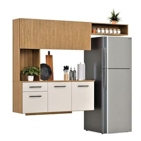 Armário De Cozinha Completo Joana Com 6 Portas E 1 Gaveta Para Cozinha Compacta Ripado Off