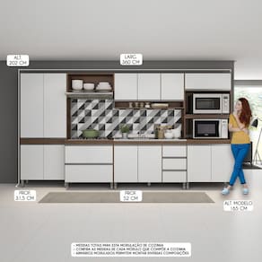 A Cozinha Sabrina Modulada foi desenvolvida para atender todas as suas necessidades do dia a dia com um design moderno, funcionalidade e versatilidade. A Cozinha Modulada e a tendencia do momento e foi arquitetada com modulos uteis que vao facilitar a sua rotina diaria, preparos dos alimentos e armazenamento dos utensilios e mantimentos, mantendo sua cozinha sempre organizada. Por se tratar de armarios de cozinha modulados voce pode ajustar os modulos conforme o espaco disponivel e montar diversas modulacoes diferentes para deixar o ambiente muito mais aconchegante. A elegancia fica por conta dos puxadores em perfil e os pes dando um toque unico de sofisticacao. A Cozinha Sabrina e produzida com materiais de excelente qualidade, garantindo a durabilidade e vida util. O melhor em moveis no design atual aliando conforto, qualidade e otimos precos, so na Menu Moveis!