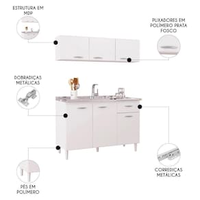 Conteúdo da Embalagem: 1 Armário aéreo, 1 Balcão, 1 Pia.