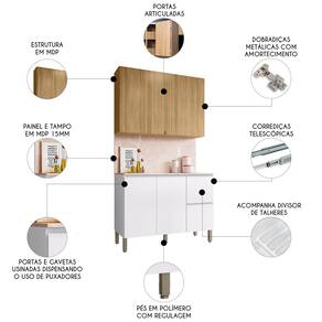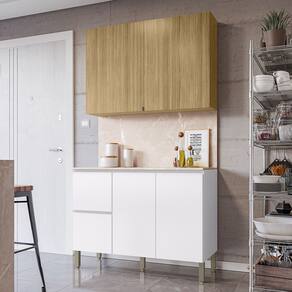 Com o Armário de Cozinha CP01 e Tampo 120cm Minsk K02 Branco/Freijó, da Mpozenato, sua casa fica mais bonita, organizada e cheia de estilo!
