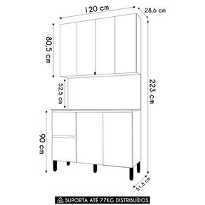 Peso Suportado Distribuído: Balcão:43 Kg / Armário:24 Kg / Tampo com Painel:10 Kg.