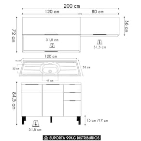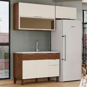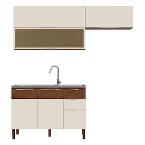 Conteúdo da Embalagem: 1 Armário Aéreo 80cm, 1 Armário Aéreo 120cm, 1 Balcão, 1 Pia.