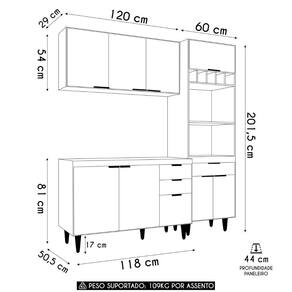 Conteúdo da Embalagem: 1 Armário Aéreo, 1 Balcão, 1 Paneleiro, 1 Pia.