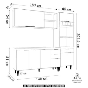 Conteúdo da Embalagem: 1 Armário Aéreo, 1 Balcão, 1 Paneleiro, 1 Pia.