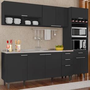 Conteúdo da Embalagem: 1 Armário Aéreo 100cm, 1 Armário Aéreo 80cm, 1 Balcão, 1 Paneleiro, 1 Pia.