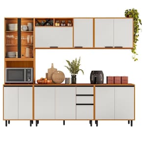 Conteúdo da Embalagem: 1 Armário Aéreo 120cm, 1 Armário Aéreo 80cm, 1 Balcão 120cm, 1 Balcão 80cm, 1 Paneleiro.