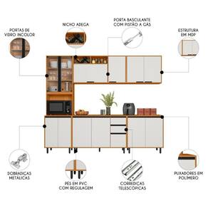 Armário de Cozinha CP03 260cm Nala Freijó UV/Off Acetinado Z44 - Mpozenato
