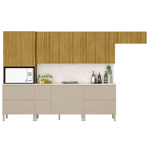 Com o Armário de Cozinha CP04 e Tampo 120cm Minsk K02 Vanilla/Freijó, da Mpozenato, sua casa fica mais bonita, organizada e cheia de estilo!