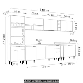 Balcão 178cm: 178 x 81 x 50,5 cm.