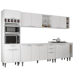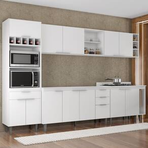 Conteúdo da Embalagem: 1 Armário Aéreo 150cm, 1 Armário Aéreo 80cm, 1 Balcão 148cm, 1 Balcão 80cm, 1 Balcão Porta Pano, 1 Paneleiro, 1 Nicho Adega.