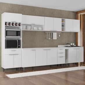 Conteúdo da Embalagem: 1 Armário Aéreo 100cm, 2 Armários Aéreos 80cm, 1 Balcão 178cm, 1 Balcão 80cm, 1 Balcão Porta Pano, 1 Paneleiro, 1 Nicho Adega.
