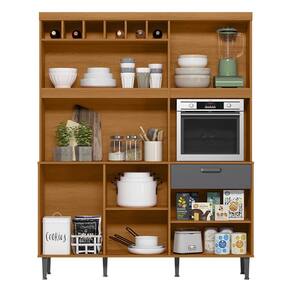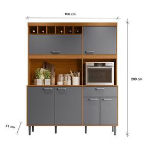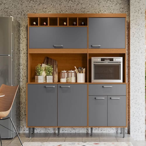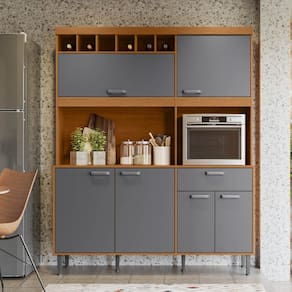 Armário de Cozinha Dakota 6 Portas 1 Gaveta e Adega para 6 Garrafas Jequitibá/Grafite - Lukaliam