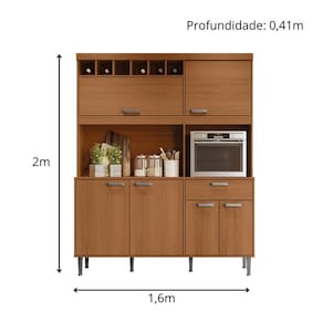 Espaço de Armazenamento InteligenteO Armário Dakota se destaca pelo amplo espaço de armazenamento. Com 5 portas, 1 gaveta, prateleiras e nichos, ele oferece a capacidade necessária para acomodar todos os seus utensílios e louças de forma organizada. Além disso, conta com um espaço especial para adega, perfeito para armazenar até 6 garrafas, e um compartimento para micro-ondas, facilitando o acesso aos eletrodomésticos mais utilizados.