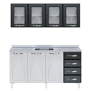 Armário de Cozinha de Aço Star 2 Peças Com Vidro e Balcão Para Pia – Branco/Preto