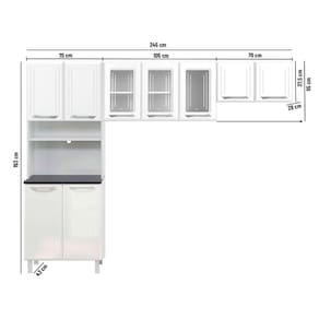 Armário de Cozinha de Aço Telasul Topázio C/ Vidro 3 Peças Branco - Telasul