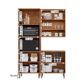 Produzido em MDF, conta com 8 portas com dobradiças soft close e prateleiras amplas para manter tudo organizado.