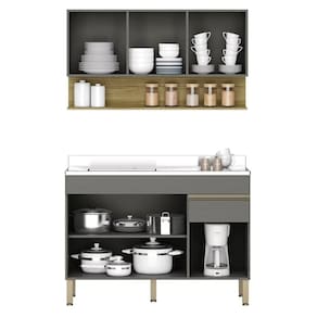 Você quer renovar a sua Cozinha deixando mais moderna e funcional? Então conheça o Armário de Cozinha e Balcão com Pia 120cm Lina K02 Gris/Freijó, da Mpozenato!