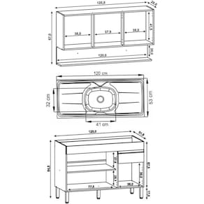 Conteúdo da Embalagem: 1 Balcão, 1 Armário Aéreo, 1 Pia.