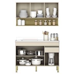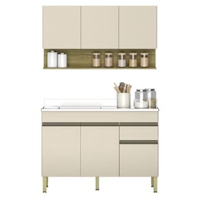 Você quer renovar a sua Cozinha deixando mais moderna e funcional? Então conheça o Armário de Cozinha e Balcão com Pia 120cm Lina Z06 Vanilla/Freijó, da Mpozenato!