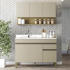 Conteúdo da Embalagem: 1 Balcão, 1 Armário Aéreo, 1 Pia.