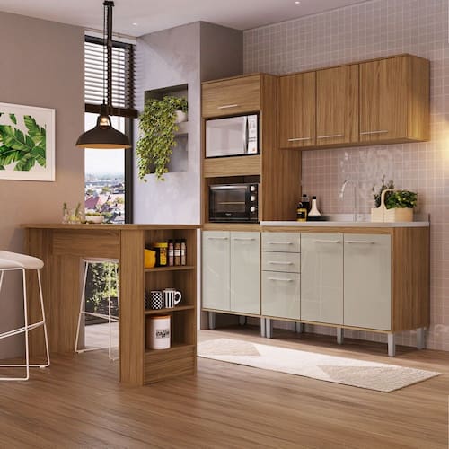 O(a) Armário de Cozinha Elóra com Balcão para Pia e Bancada 9 Portas 2 Gavetas Naturallle/Cristalo - Pnr Móveis é produzido em MDP na escala de brilho Brilhante, e possui um grau de dificuldade de montagem: Médio.