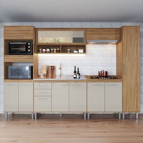 O(a) Armário de Cozinha Elóra com Balcão para Pia e Cooktop 11 Portas 2 Gavetas Naturallle/Cristalo - Pnr Móveis é produzido em MDP na escala de brilho Brilhante, e possui um grau de dificuldade de montagem: Médio.