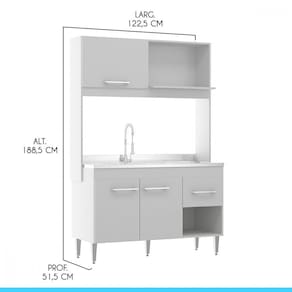 Armário De Cozinha Em Mdp Para Kitnet 122x188cm Menu Móveis Branco Transforme a sua cozinha em um ambiente mais funcional com o Armario de Cozinha Marina, criado especialmente para atender suas necessidades do dia a dia com beleza e versatilidade. Dispoe de um design atual e muito espaco interno para manter tudo organizado e ao alcance para facilitar a sua rotina. Produzido com materiais de excelente qualidade, garantindo a sua resistencia ao desgaste diario e mantendo sua beleza e funcionalidade por muito tempo. O melhor em moveis no design atual aliando conforto, qualidade e otimos precos! Caracteristicas: Produzida em MDP de 12 mm Acabamento UV Gavetas com Corredica Metalica Portas com Dobradica Metalica Porta Basculante com Articulador Puxadores Alca em ABS Pes com Reguladores em ABS Pia e Torneira NAO acompanham o Armario