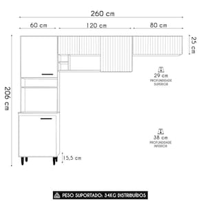 Profundidade: 38 cm | Largura: 260 cm | Peso Suportado: 34 Kg | Marca: Mpozenato | Requere montagem: Sim | Material: MDP | Cor: FreijóOff | Origem: | Altura: 206 cm | ProductContents: 1 Cozinha Compacta | OriginState: PR | Manual: Sim | SizeDescription: 206 x 260 x 38 cm | ProductWidth: 260 | ColorSimple: Freijó | Model: Ema | da peça: 1 | É Fragil?: Não | Componentes: 1 Cozinha Compacta | ColorSupplier: Freijó | ColorFamily: Freijó | Gênero: Unisex | OriginCountry: | MaterialFamily: MDP | Peso: 52,1 kg | AssemblyRequired: Sim, sugerimos a contratação do nosso de montagem (para os CEPs em que o está dispon | ProductHeight: 206 | Quantidade de Itens: 1 | ProductLength: 38 | SupplierSimpleName: Armário de Cozinha Ema Freijó UVOff AcetinadoRipado Frisado Z44 - Mpozenato | Color: Freijó | Fabricante: Mpozenato | Tipo de Garantia: Fabricante | ProductWeight: 52 | ProductWarranty: 3 Meses