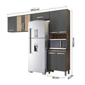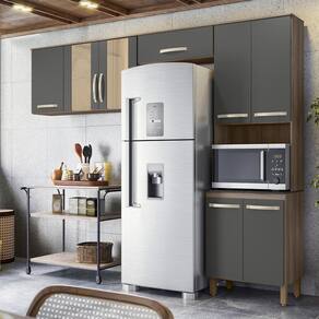 Armario de Cozinha Fit com 8 Portas 261 cm - Cinza