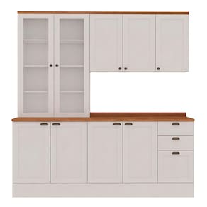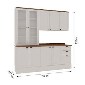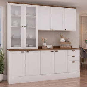 O Armário de Cozinha Iluminata com 3 Peças cor Branca com tampos no padrão Ébano é a escolha perfeita pra quem quer uma cozinha elegante, acolhedora e super funcional no dia a dia. Com visual clássico das portas com moldura e a combinação atemporal do branco com o amadeirado Ébano, ele deixa o ambiente mais claro, organizado e cheio de charme. Os módulos oferecem ótimo espaço interno pra guardar louças, utensílios e tudo que você precisa ter à mão, enquanto o acabamento caprichado valoriza cada detalhe do móvel. É aquele tipo de armário que transforma a cozinha sem esforço, trazendo praticidade, beleza e aquele clima gostoso de casa bem cuidada.