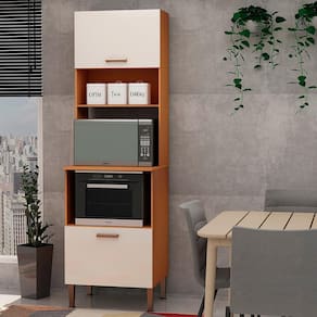 Que tal deixar sua cozinha mais bonita, prática e com tudo no lugar? O Kit Forno Elétrico e Micro-ondas Genialflex é aquele móvel esperto que ajuda na organização do dia a dia e ainda dá um charme a mais no ambiente. Ele funciona como uma torre quente, ideal pra acomodar o micro-ondas e o forno elétrico com segurança e estilo. Feito 100% em MDF, tem acabamento em laca brilho nas portas brancas e estrutura no padrão amadeirado Freijó, que deixa tudo mais aconchegante. As portas basculantes com puxadores em ABS são fáceis de usar, e as dobradiças metálicas garantem durabilidade. Um móvel completo, bonito e funcional pra sua cozinha ficar do jeitinho que você sempre quis!