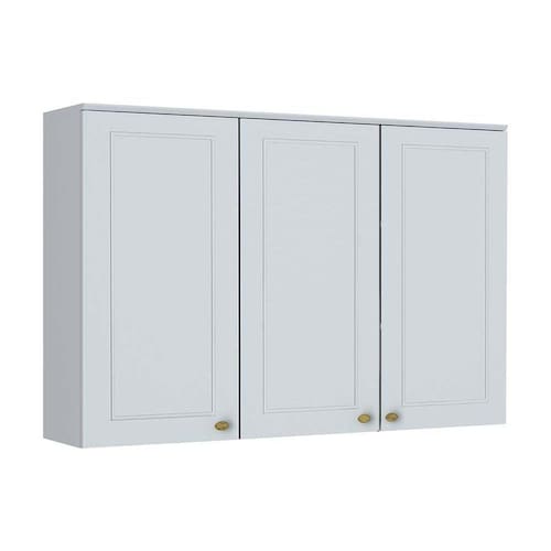CARACTERÍSTICAS DE MÓVEIS Tipo de Estrutura do Móvel - 100% MDF Tipo de Pintura - UV (Ultravioleta) Tipo de Acabamento da Pintura - Fosca Características de móveis - Armário Aéreo - Armário Triplo Tipo de puxador - Puxador em Metal Zamac Quantidade de Prateleiras - 2 Prateleiras Quantidade de Portas - 3 Portas de Abrir Garantia - 3 Meses