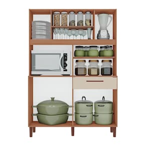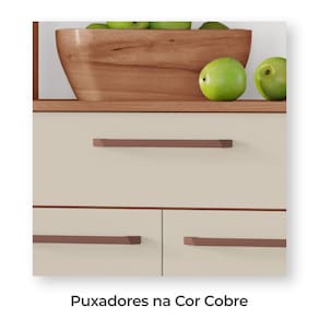 Apresentamos o Armário de Cozinha Icaraí! O Armário Icaraí é funcional e elegante, destacando-se pelos puxadores na cor cobre que conferem um toque sofisticado. Possui uma excelente divisão interna, facilitando a organização. A pintura touch oferece um acabamento moderno e resistente. As corrediças telescópicas garantem suavidade na abertura e fechamento das gavetas, enquanto os pés em PVC asseguram durabilidade. Com 7 portas, é ideal para quem busca praticidade e estilo.