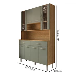 O(a) Armário de Cozinha Kit 8 Portas 2 Gavetas com Vidro Freijó/Gris - Loja é produzido em MDP na escala de brilho Semi-Fosco, e possui um grau de dificuldade de montagem: Médio.