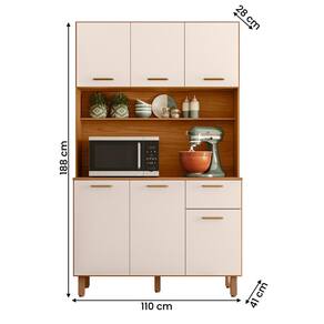 Produzida em MDP resistente, possui pés com regulagem e amplo espaço para micro-ondas e utensílios.