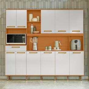 Com estrutura resistente em MDP, 11 portas e 1 gaveta com corrediças telescópicas, ele oferece amplo espaço para guardar utensílios e mantimentos.