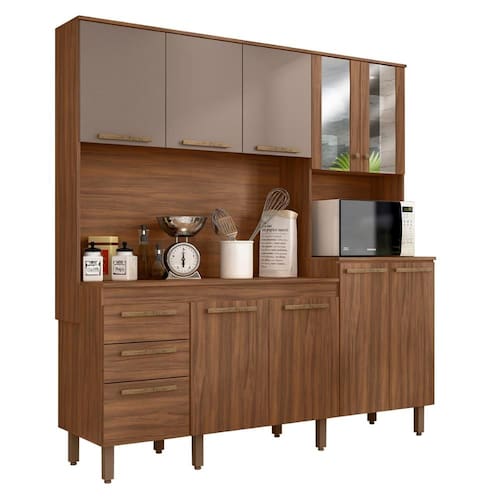 Com estrutura em MDP de alta qualidade, amplo espaço interno e design moderno, ele oferece 10 portas duas com detalhe em vidro e 2 gavetas com corrediças metálicas.