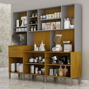 O Armário de Cozinha Plus 9 Portas 2 Gavetas com Nicho e Espaço para Micro-ondas Lira é a solução ideal para quem busca organização e praticidade sem abrir mão do estilo. Com nove portas e duas gavetas, ele oferece amplo espaço para armazenar louças, panelas, mantimentos e utensílios, garantindo tudo sempre acessível. O espaço dedicado para micro-ondas otimiza o ambiente, tornando o uso do eletrodoméstico mais prático no dia a dia, enquanto o nicho aberto pode ser utilizado para itens decorativos ou de uso frequente. Seu design moderno combina com diferentes estilos de cozinha, criando um ambiente funcional e bem distribuído.