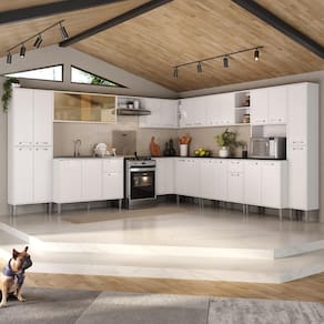 Armário de Cozinha Modulada 12 Pçs com Balcão de Pia Siena Multimóveis MP2240 - Branco