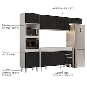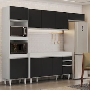Para quem busca por praticidade, modernidade e beleza, o Armário de Cozinha Modulada 4 Peças CP10 Balcão Branco/Preto, da Lumil é ideal! Confira!