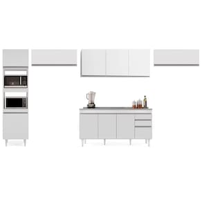 Conteúdo da Embalagem: 1 Balcão 150cm, 1 Armário Aéreo 150cm, 2 Armários Aéreos 70cm, 1 Paneleiro, 1 Pia Inox 150cm.