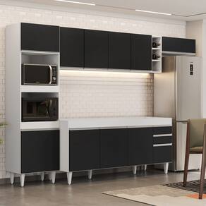 Com design moderno e elegante, o Armário de Cozinha Modulada 5 Peças CP16 Balcão Branco/Preto, da Lumil, vai facilitar a sua rotina e deixar tudo no devido lugar, confira os detalhes!