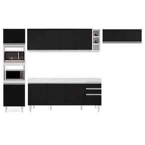 Com design moderno e elegante, o Armário de Cozinha Modulada 5 Peças CP16 Balcão Branco/Preto, da Lumil, vai facilitar a sua rotina e deixar tudo no devido lugar, confira os detalhes!