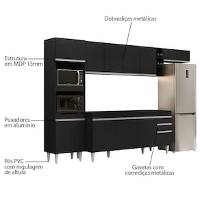 Com design moderno e elegante, o Armário de Cozinha Modulada 5 Peças CP16 Balcão sem Tampo Preto, da Lumil, vai facilitar a sua rotina e deixar tudo no devido lugar, confira os detalhes!
