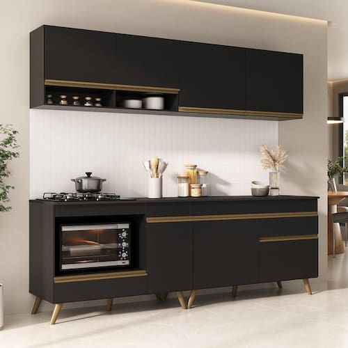 Armário de Cozinha Modulada Compacta com Balcão para Cooktop/Forno Veneza Multimóveis MP2262 - Preto