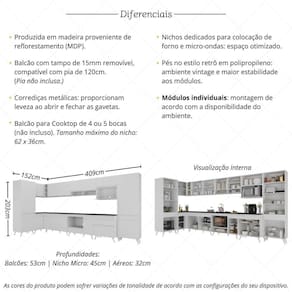 - Nichos dedicados para forno (até 12kg) e micro-ondas (até 17kg) - Não compatível com forno de embutir.