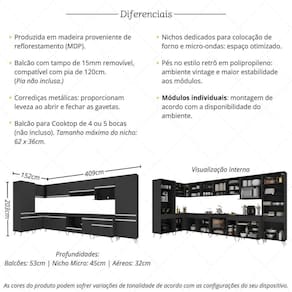 - Nichos dedicados para forno (até 12kg) e micro-ondas (até 17kg) - Não compatível com forno de embutir.